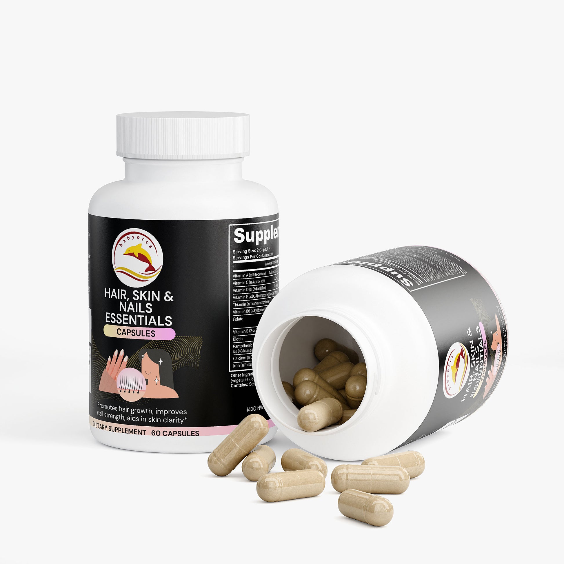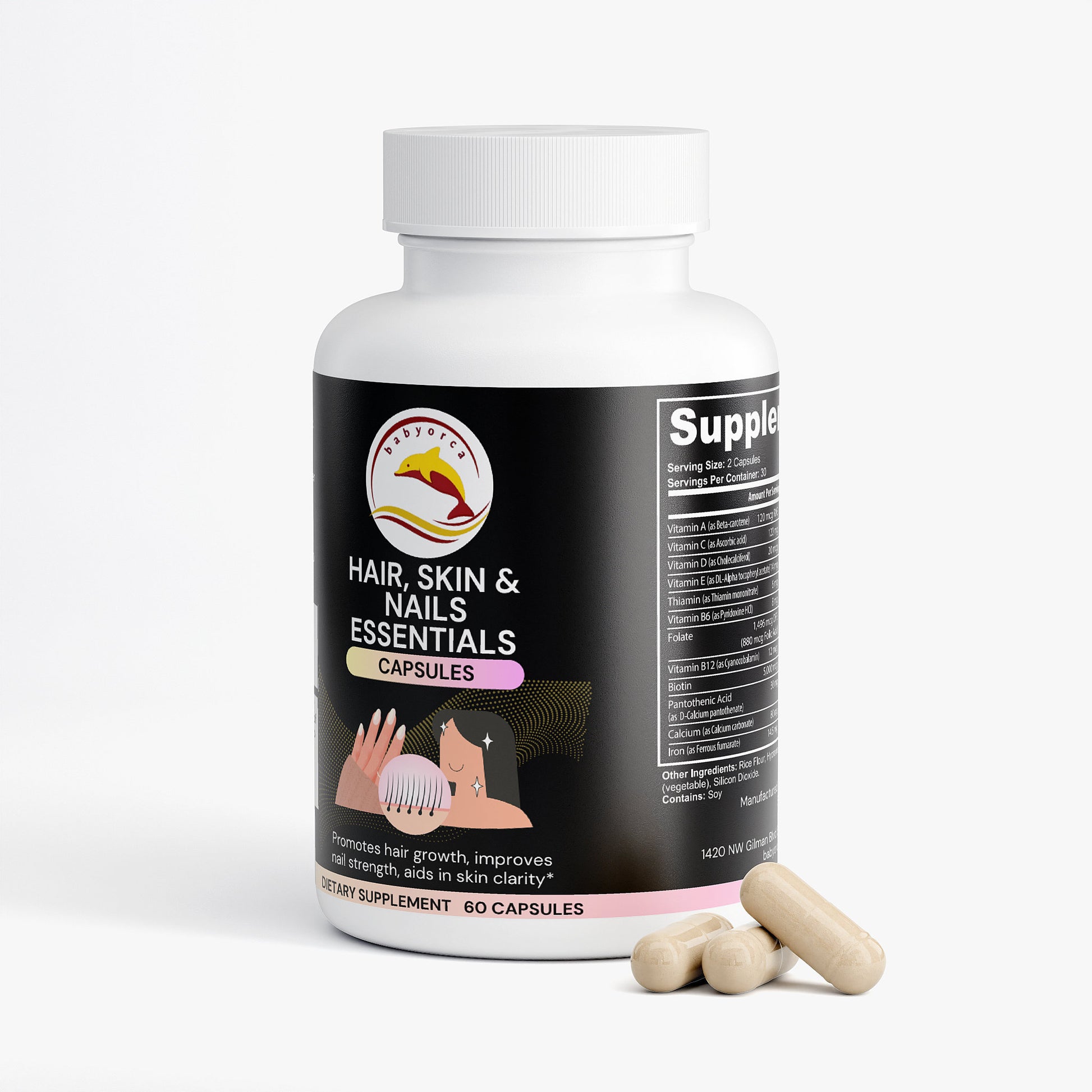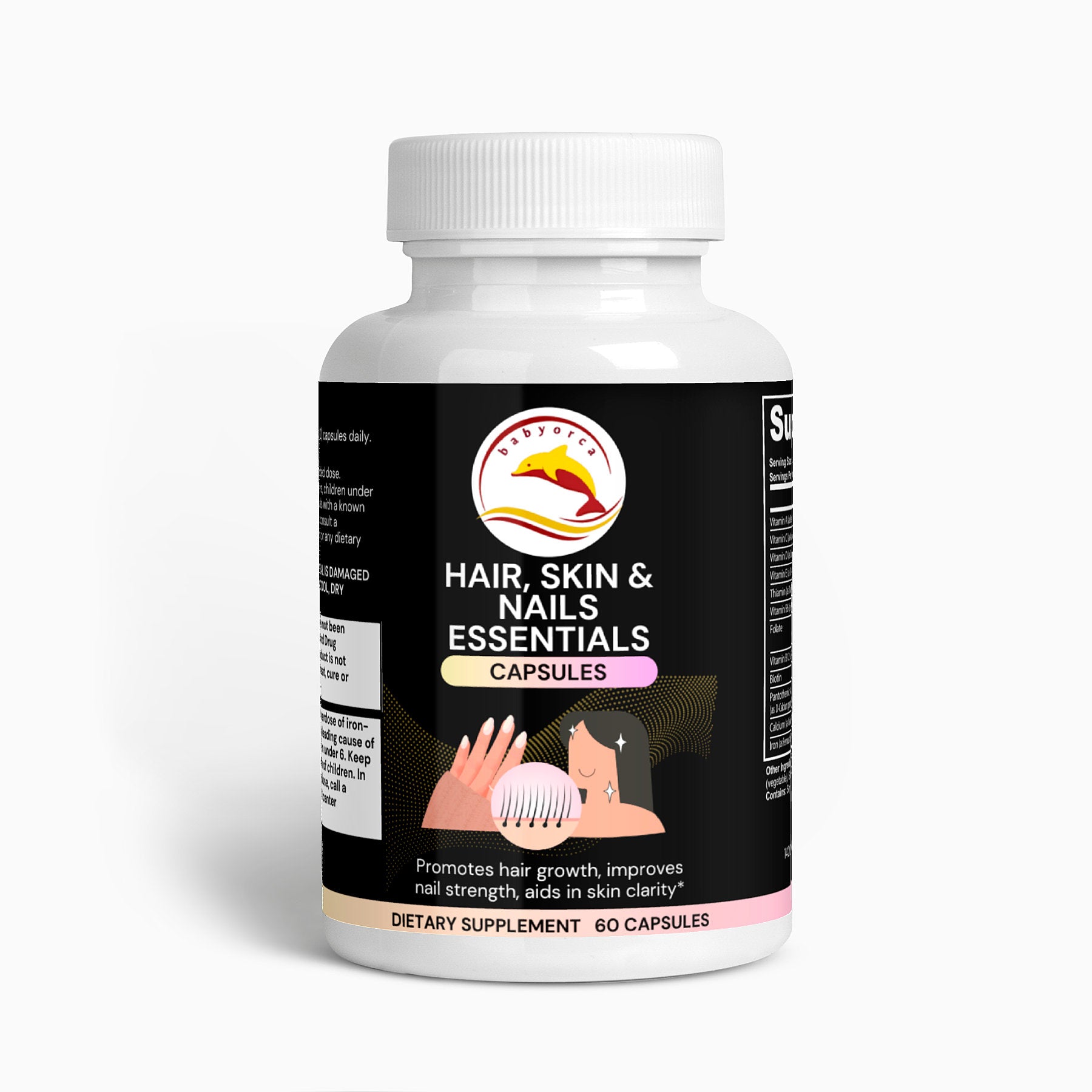 Our Hair, Skin, and Nails Essentials supplement is made to give you that natural glow. In combination, Vitamin B6, Folate, and Biotin work together to maintain elastin in the hair, skin, and nails. Elastin is a major component of body tissues, helping them function correctly.