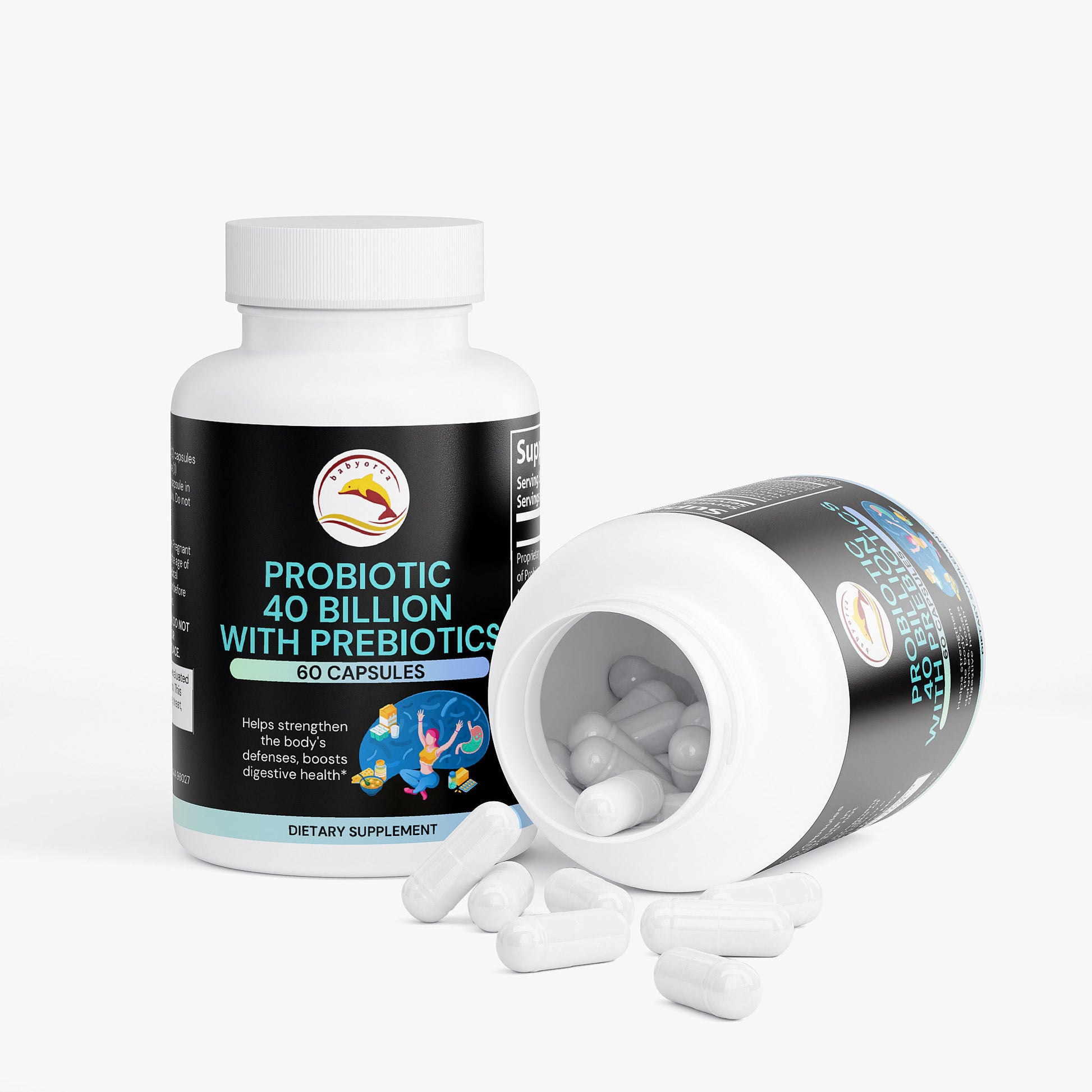 Probiotic 40 Billion with Prebiotics is designed to strengthen the body’s defenses and promote digestive health.*
